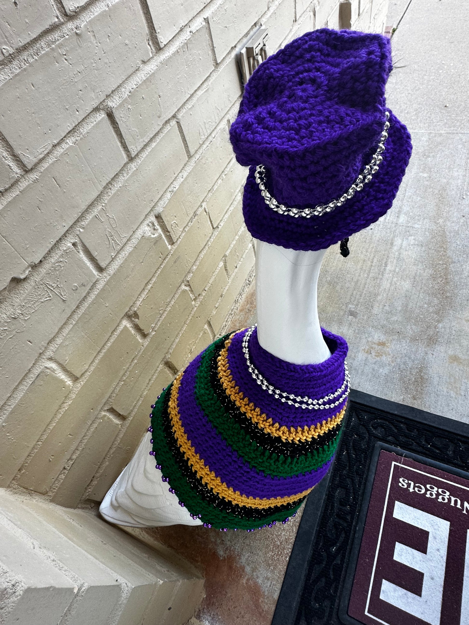 Silly Porch Goose Mardi Gras Outfit - Goose Statue Festival Gear - 23” Goose - Yard Art Clothing - Mardi Gras Crochet Clothing For Goose