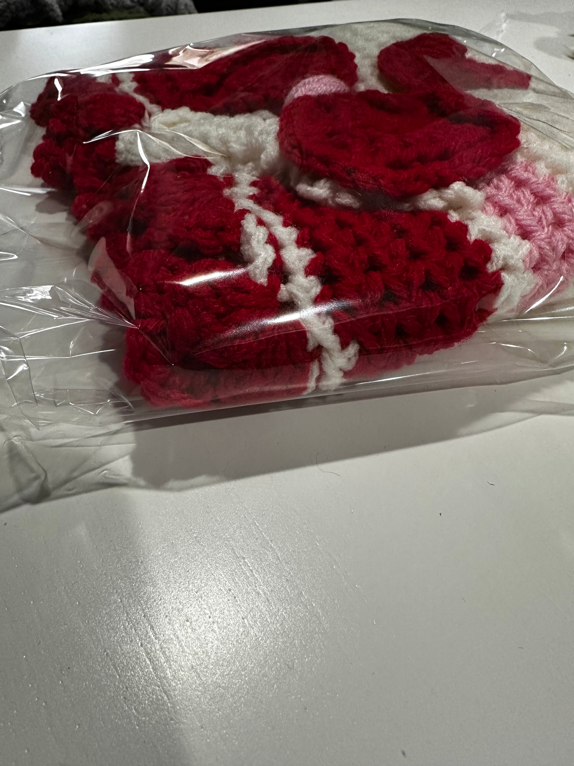 Introducing our new Silly Porch Goose Outfitters Valentine's Day outfit. This adorable dress and headband is hand crocheted, adding a touch of color, and holiday to your decorative yard art. This handmade outfit will fit the standard 23"-28" plastic or cement goose.